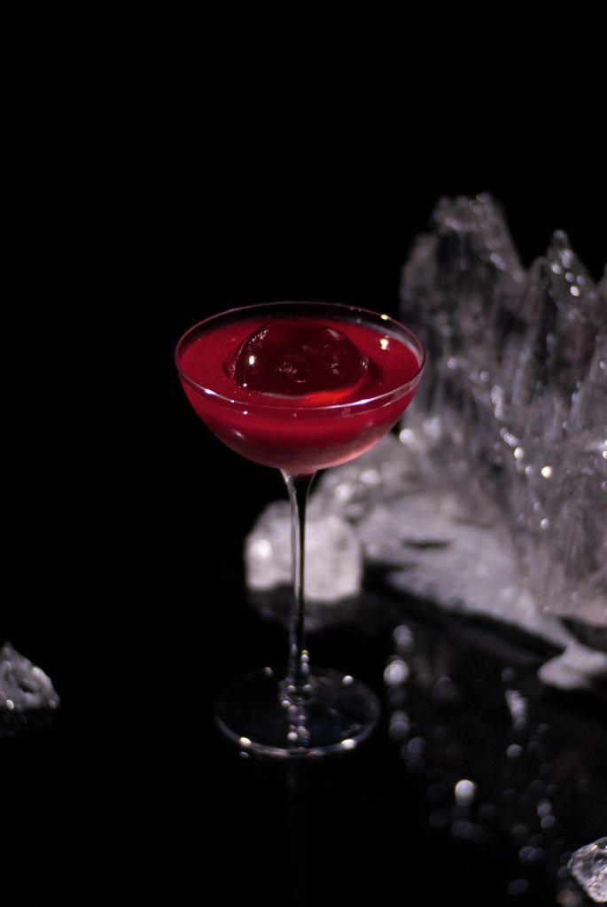 The power of the moon is nearly at its end, with just a small left-hand crescent visible in the sky, known as Waning Crescent. The cocktail that is linked is a stirred drink, earthy and herbaceous from beetroot and pipiroka with just a hint of acidity from vinegar. Gentle coffee notes from Mr Black coffee liqueur blend with the aroma of coffee water spray, added on top of the cocktail that is served in a coupette glass with an ice ball. The cocktail is deep red in colour with gold and silver edible glitter garnish that reflects the galaxy’s mesmerising sparkle.